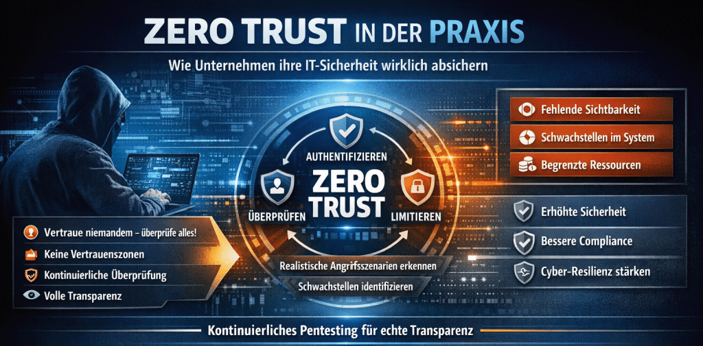 Zero Trust is more than just a buzzword – it's a central component of modern IT security concepts. Learn how to effectively protect your systems with continuous pentesting, clear IT security policies, and an intelligent cybersecurity strategy.
